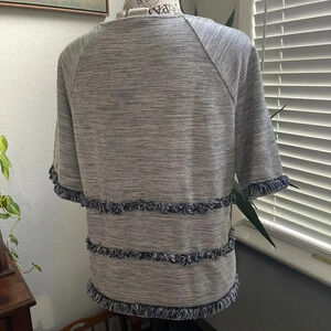 Chico's Women's 0 Small Fringed Top's Gray Basic Bohemian Classic