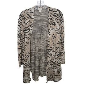 Chico’s Women’s 0 Small Open Front Zebra Animal Print Cardigan Sweater Neutral