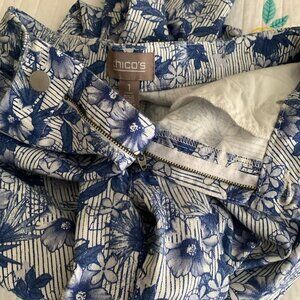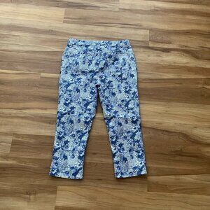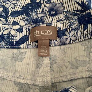 Chicos Womens 1 Crop Floral Jeans Size 8 Blue White Denim Capri High Rise