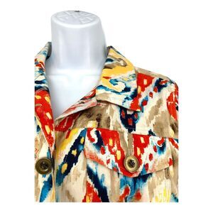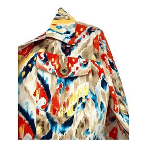 Chicos Women's 1 M/8 Multicolored Artsy Blouse Jacket Button Up Long Sleeve