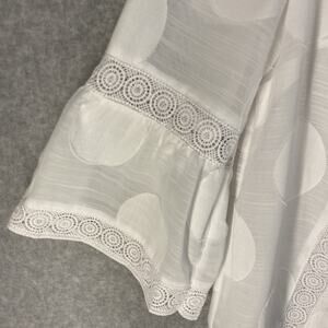 🤍 Chico’s Womens 1 White V-Neck Bell Sleeve Top Lace Trim Polka Dot 🤍