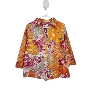 Chico's Women's 100% Cotton Paisley No Iron Button Down Shirt