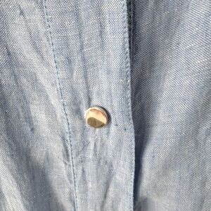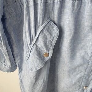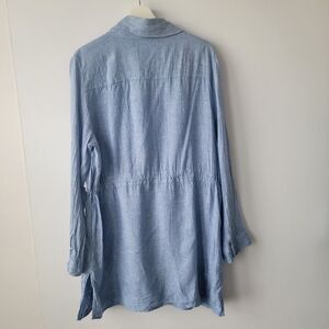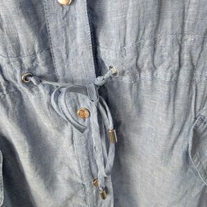 Chicos Womens 100% Linen Cross Utility Jacket sz 16/18 Drawstring Snap Down Blue