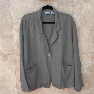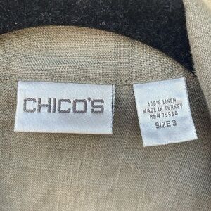 Chico’s Women’s 100% Linen Green Blazer Jacket Single Button Size 3 (XL)