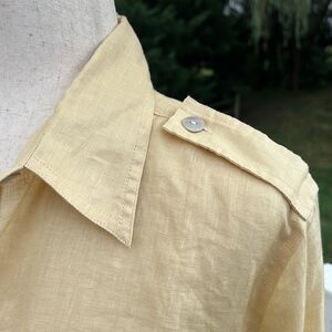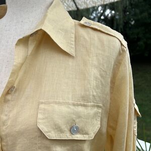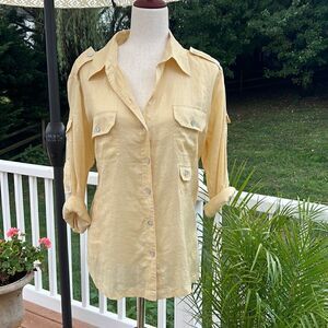 Chico’s Women’s 12 Medium 100% Linen yellow Button up Shirt Top Blouse