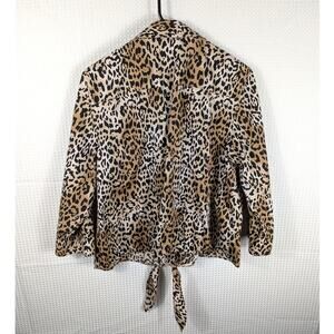 Chico’s Women’s 2 L Leopard Print Cotton Button Front Tie Hem Shirt Blouse