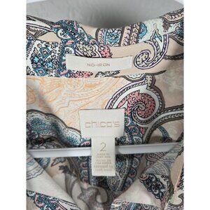 Chicos Womens 2 (Large) Multi Color Paisley No-Iron Button Down Tunic Shirt