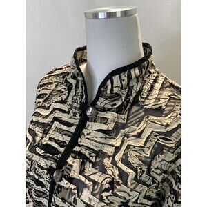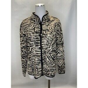 Chico’s Women’s 2 US L Black Mesh With Fabric Strips Trim Mandarin Collar Jacket
