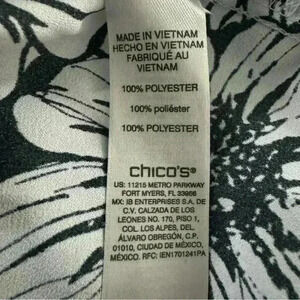 This Chico's women's blouse is a stylish addition to your wardrobe. The mixed floral and dot print design in black and white is eye-catching and sliming making it perfect for any occasion. The roll tab sleeves add versatility to the blouse and the collared neckline with button closure gives it a classic touch.