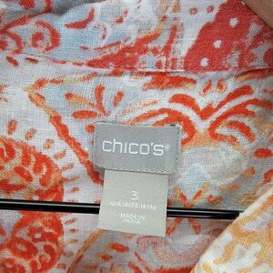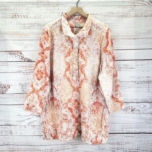 Chicos Womens 3 16/18 Shirt Medallion Print Linen Tunic Lagenlook Coastal Beachy