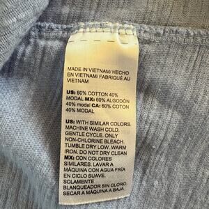 This Chico's women's 3/4 sleeve "The Ultimate Tee" in light blue is a versatile and stylish top perfect for casual occasions. Made from a comfortable blend of cotton and modal, this pullover V-neck tee features a solid light blue color. The regular fit and size 0 (small) make it a flattering choice for women looking for a classic and timeless wardrobe staple. The chest measures 35 inches and the front length is 26.5, while the back length is 28 inches. Machine washable and suitable for summer, fall, and spring seasons, this tee is a practical and fashionable addition to any wardrobe.