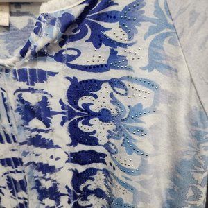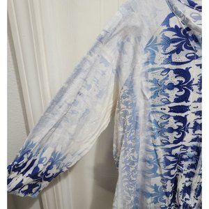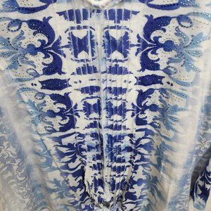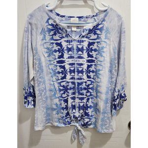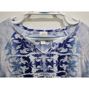 Chico's Women's 3/4 Sleeve’s Embellished Tie Front Blouse Top Blue Size 2 (L)