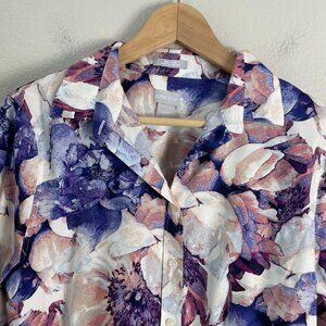 Chicos Womens 8 No Iron Chic Stretch Floral Button Up Shirt 3/4 Sleeve Blouse