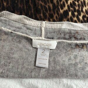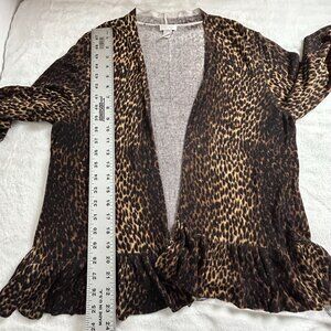 Chico's Womens Animal Print Open Front Ruffle Trim Cardigan Sweater Size 2 Brown