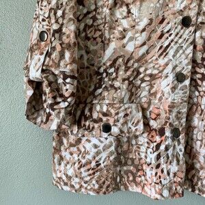 Elevate your style with the Chico's Animal Print Snap Button Jacket, designed for women's CHICO'S size 2 -(equivalent to Women's Large (12)).