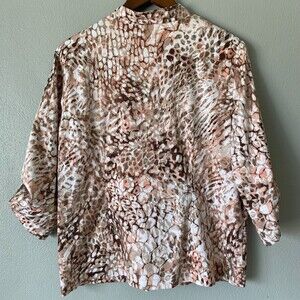 Chico's Women's Animal Print White Tan Pink 3/4 Roll Tab Sleeve Button Jacket