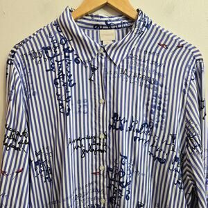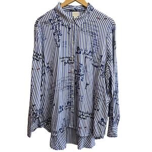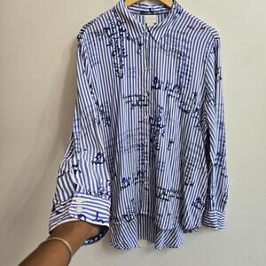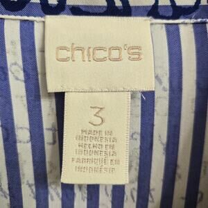 Chico’s Womens Artsy Eclectic Boho Hi Low Blue Stripe Button Up Shirt Size 3/ XL