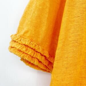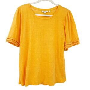 Chicos Womens Beachy Minimalist Summer 100% Linen Fringe Top in Golden Yellow. Size large.