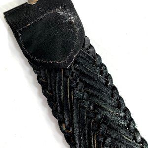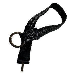 Chicos Womens Belt Size Small Black Leather Braided Silver Colored Hook Buckle. No flaws.