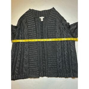 Chico's Women’s Black Silver Sparkle Cable Knit Open Front Cardigan Size 2 US 12