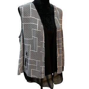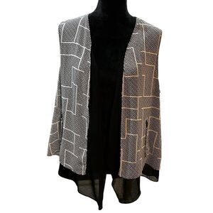 Chico's Women's Black White Dot Layered Chiffon Open Vest Sz 2 Chico’s = Large