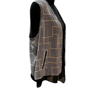 Chico's Women's Black Whited Dot Layered Chiffon Open Vest Sz 2 Chico’s = Large