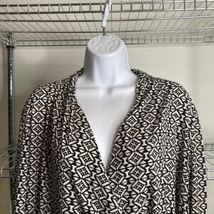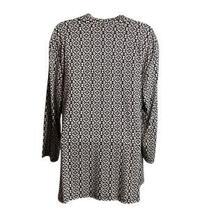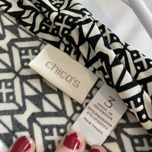 Chico's Women's Black White Geometric Faux Wrap Tunic Top Size 3 XL Old Money
