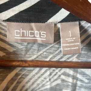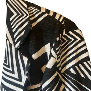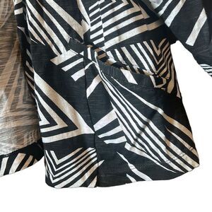 Keywords: Chico's, blazer, jacket, geometric print, black and white, open front, modern, contemporary, womens, career wear, casual, lightweight