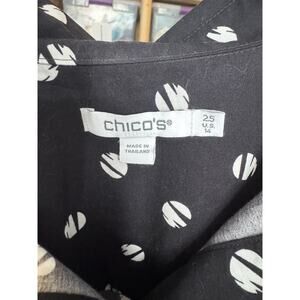 Chico's Women's Black White Polka Dot Long Sleeve Button-Up Shirt Size 2.5 (14)