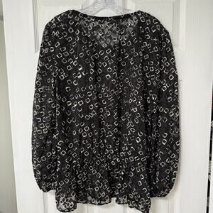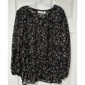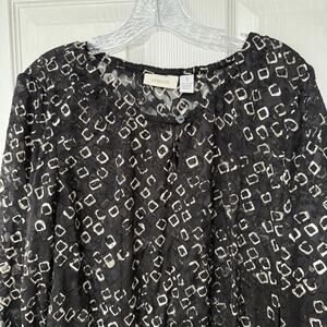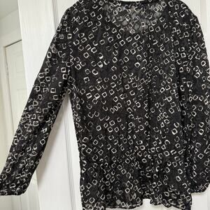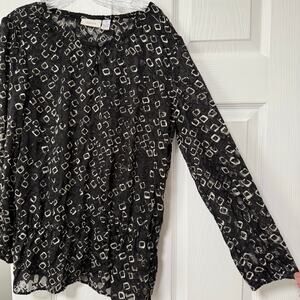 Chico's Women's Black & White Sheer Long Sleeve Top Size 1.