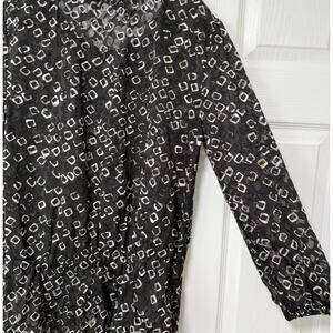 Chico's Women's Black & White Sheer Long Sleeve Top Size 1. Fabric: Rayon, Nylon. Approx. Measurements: Pit to Pit 20.5"in. Sleeves 23"in. Top Length 28"in. No Stains No Holes. Pre-owned in good condition.