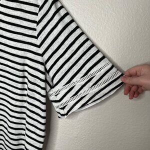 Excellent preloved condition Chicos Womens Black White Striped Linen V-Neck Top Size 2 US L