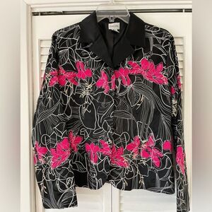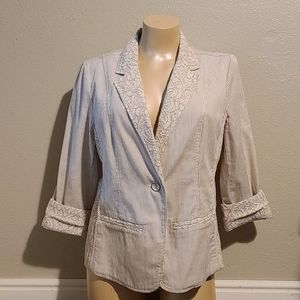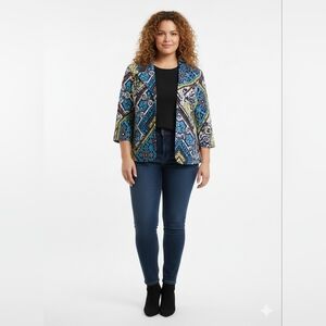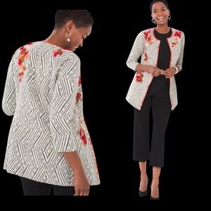 Chico’s Women's Black and White Patterned Blazer, Chico’s 1 = Medium