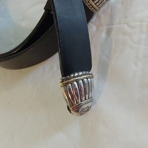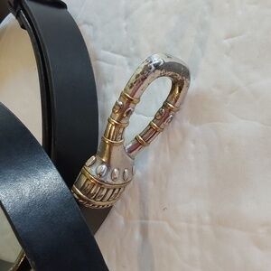 Chico's Womens Black leather Gold Silver Buckle CLASP Belt Sz. M/L
