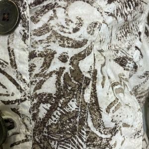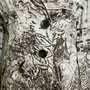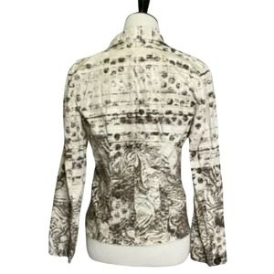 Chico's Women's Blazer Jacket Cream And Brown Long Sleeve Floral Pockets Sz 0
