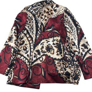 Chicos Women's Blazer Jacket Size 0 Small Burgandy Black Multicolor Paisely