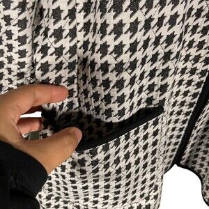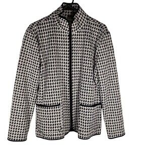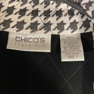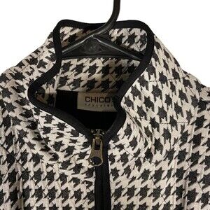 Chicos Women’s Blazer Jacket Size 1 Medium Black and White Herringbone Zip Up