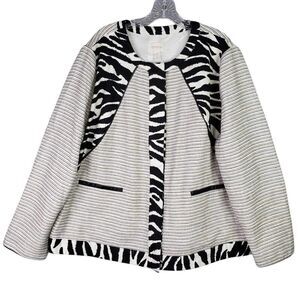 Chicos Women's Blazer Size 4 US XXL Black White Striped Animal Stretch