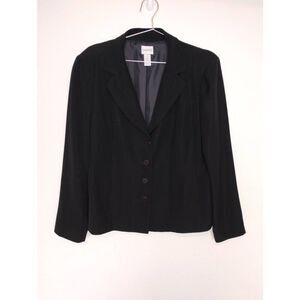 Chicos Womens Blazer Sz 12 Black Tailored Fit Button Front Jacket Corpcore