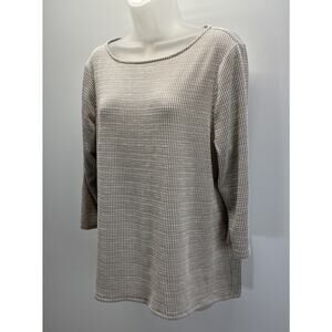 Chicos Womens Blouse 2 Brown White Seersucker Gingham Stretch Fall EUC
