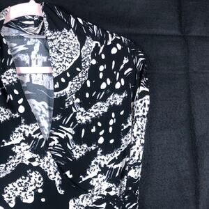 Chicos Womens Blouse Black White Abstract Easywear Faux Wrap Sleeveless 1 U.S Size (M)