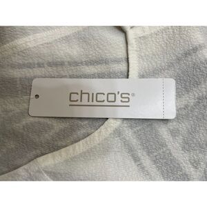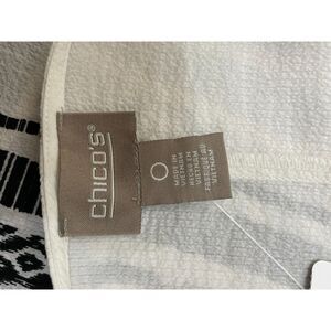 Chico's Women's Blouse Blurred Knit Crepe Split Neck Popover 0 White Geometric