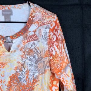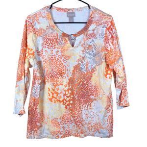 Chicos Womens Blouse Multicolored Paisley 3/4 Sleeve Front Key Hole 1 (M)