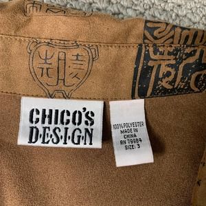 Chico's Womens Blouse Shirt Size 3 Brown Japanese Character Print Button Up