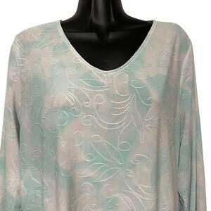 Chicos Womens Blouse Size 2 or Large White Blue Embroidered V Neck 3/4 Sleeve