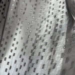 Chicos Women's Blouse Size XL Whimsy Goth Metallic Gray Beaded Bohemian Sheer