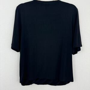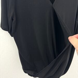 Chico's Womens Blouse Top Size L Wrap Style V Neck Short Neutral Black