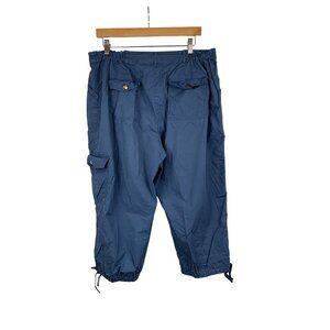 Embrace comfort and style with these blue Chico's capri pants. Made from 100% cotton, these pants are ideal for casual outings or relaxing at home. With practical pockets and an adjustable hem, they ensure both functionality and a flattering fit. A versatile addition to your wardrobe.