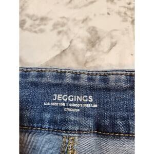 Chico's Women's Blue Destructed Pull-On Ankle Jeggings Jeans Medium Wash Size 10