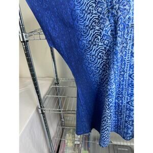 Chico's Women's Blue Ikat Boho Top Size 2 Large Festival Embellished Art To Wear
